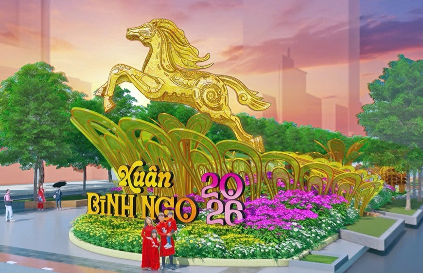 Điểm nhấn của Đường hoa Nguyễn Huệ-Tết Bính Ngọ 2026 là đại cảnh cổng chào “Nhất mã thong dong” với linh vật Ngọ kích thước lớn, có chiều cao gần 7 mét, được trình chiếu mapping vào ban đêm, phần chân có thể cử động. Cùng với đó là hàng loạt linh vật Ngọ với đa dạng kích cỡ, kiểu dáng được chế tác, bài trí theo từng cụm đại cảnh, tiểu cảnh. Nét đặc biệt của năm nay là đường hoa Nguyễn Huệ được thiết kế với hai phiên bản trải nghiệm ngày và đêm trong cùng một không gian. Vào ban đêm, nhờ ứng dụng công nghệ ánh sáng, trình chiếu mapping và AR (thực tế tăng cường) sẽ mang đến không gian đặc sắc của ánh sáng, linh vật và hoa, hứa hẹn mang đến những trải nghiệm thú vị cho người dân, du khách.