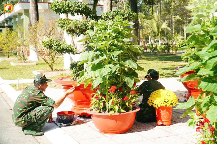 Thượng úy Nguyễn Xuân Hải, Bí thư Đoàn cơ sở Tiểu đoàn 2, chia sẻ: “Với kinh nghiệm gieo trồng, chuẩn bị hoa xuân, năm nay các đoàn cơ sở đã chủ động lựa chọn hạt giống, ươm trồng trong chậu, chăm sóc kỹ lưỡng từ nhiều tháng trước. Đặc biệt, chúng tôi đã khắc phục được một số hạn chế trong khâu ủ giống, gieo hạt, thay đổi cách thức trồng, chăm sóc để hoa nở rộ đúng dịp Tết Nguyên đán”.
