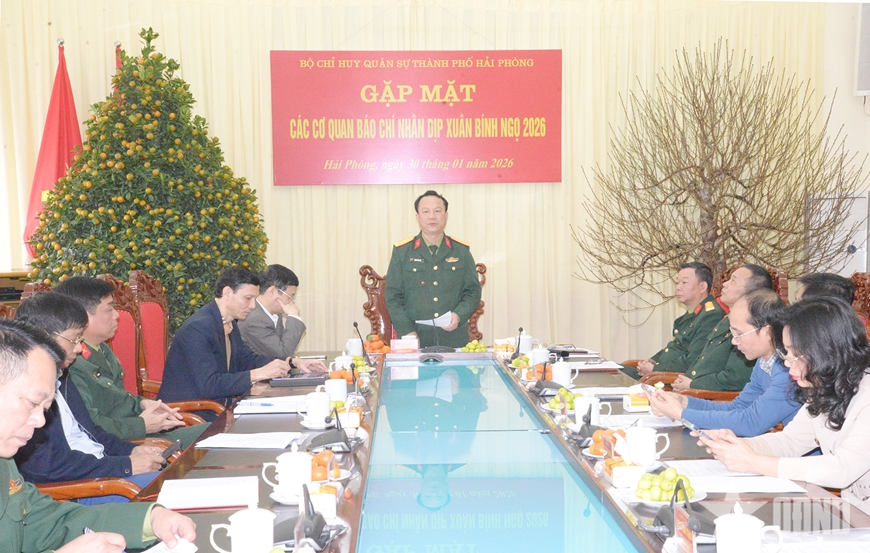 Sáng 30-1, Bộ CHQS TP Hải Phòng tổ chức gặp mặt các cơ quan báo chí nhân dịp Xuân Bính Ngọ 2026. Đại tá Đặng Văn Hòa, Chính ủy Bộ CHQS TP Hải Phòng chủ trì hội nghị.