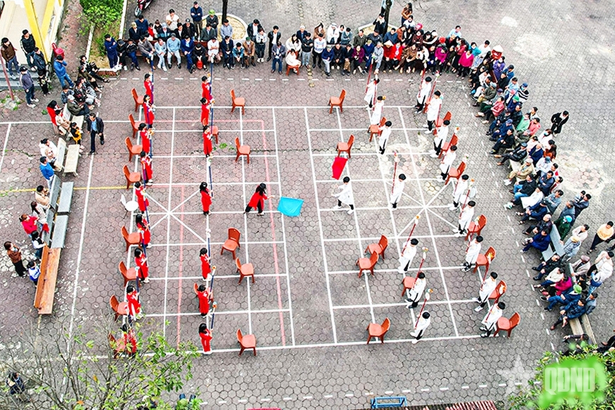 Giữa sân đình hay bãi đất rộng đầu làng, một bàn cờ khổng lồ được kẻ vẽ ngay ngắn trên nền đất. Thay vì những quân cờ gỗ nhỏ bé thường thấy, ở đây, mỗi quân cờ là một con người thật, những nam thanh nữ tú trong trang phục rực rỡ, hóa thân thành tướng, sĩ, tượng, xe, pháo, mã, tốt. Tiếng trống hội vang lên dồn dập, cờ phướn bay phấp phới, người xem quây kín xung quanh. Không khí náo nức ấy làm sống dậy cả một vùng ký ức văn hóa, nơi truyền thống và hiện đại giao thoa trong tiếng cười nói, reo hò đầu năm mới.