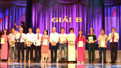 | Các tác giả nhận giải B. Ảnh: Nguyễn Tuấn Huy |