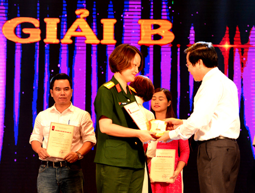 | Tác giả Mỹ Hạnh (Báo QĐND) nhận giải B với tác phẩm “Hãy trở về để thấy và tin vào sự thật” . Ảnh: Nguyễn Tuấn Huy |