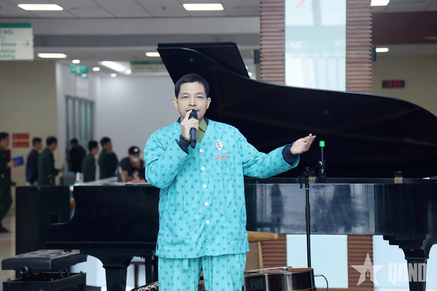 | Một bệnh nhân đang điều trị tại Bệnh viện cũng nhiệt tình hưởng ứng tham gia chương trình và hát tặng khán giả. |