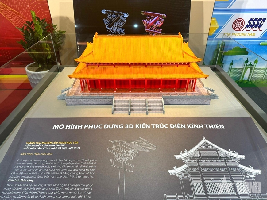 Bên cạnh đó, các nhà khoa học đã hoàn thành chương trình phục dựng 3D rất công phu về Điện Kính Thiên (2022-2023) - tòa chính điện quan trọng nhất Cấm thành. Điện có quy mô to lớn (9 gian, diện tích khoảng 1.188m²), 60 cột gỗ, thuộc loại Trùng diêm, kiến trúc đấu củng, trên mái lợp ngói rồng men vàng đặc sắc. Sự khác biệt độc đáo của ngói rồng so với kiến trúc Đông Á đương thời làm nổi bật tính sáng tạo của kiến trúc Việt Nam.
