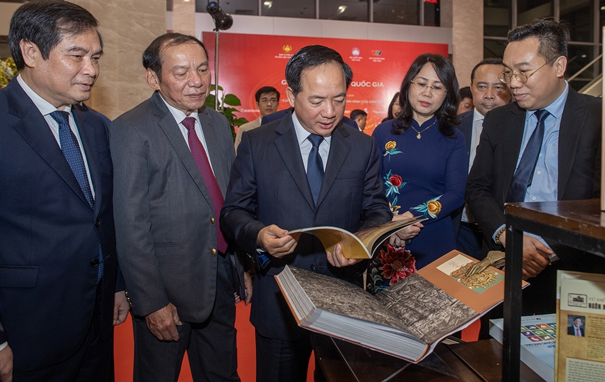 | Đại biểu tham quan trưng bày các cuốn sách đoạt Giải thưởng Sách Quốc gia lần thứ VIII. Ảnh: VIỆT LINH |