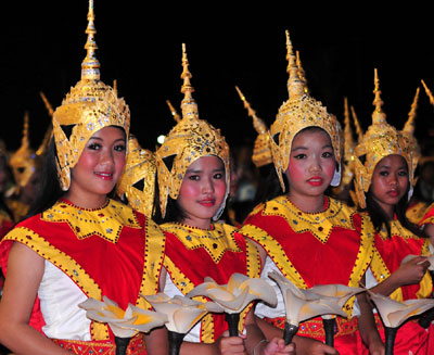 Những cô gái Lào vui tươi duyên dáng trong ngày hội. Ảnh: Xuân Gụ.