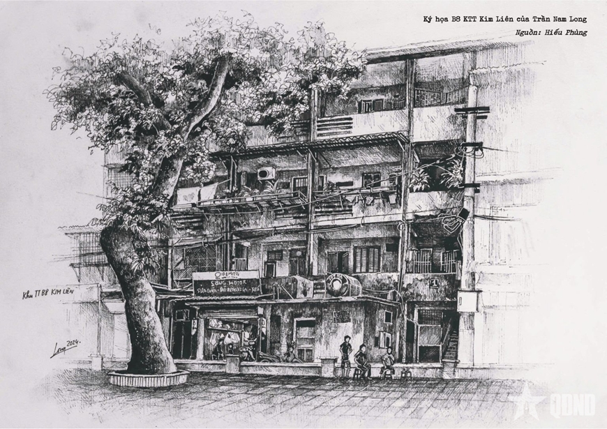 | Ký họa Khu tập thể B8 Kim Liên của họa sĩ Trần Nam Long. |