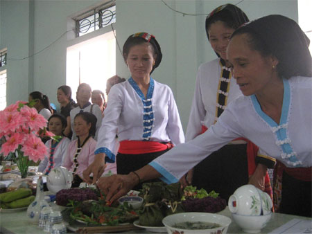 | Phụ nữ Thái mặc đồ truyền thống trong lễ mừng cơm mới |