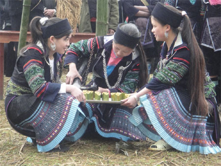 | Các thiếu nữ người Mông đen ở xã San Sả Hồ (Sa Pa, Lào Cai) diện áo váy đẹp nhất tham dự lễ hội cộng đồng |