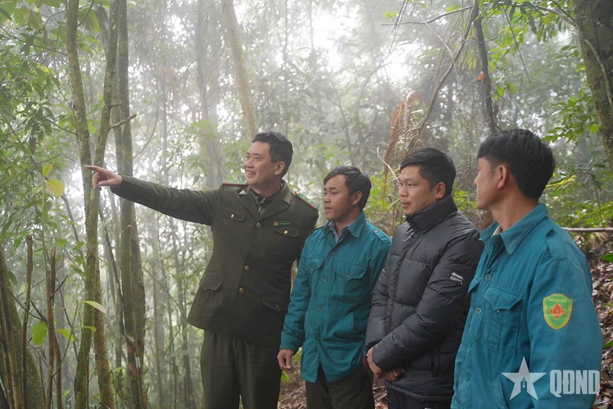 | Anh Giàng Páo Manh (đứng thứ 2 từ trái qua) vẫn hằng ngày tuần tra rừng đều đặn.  |