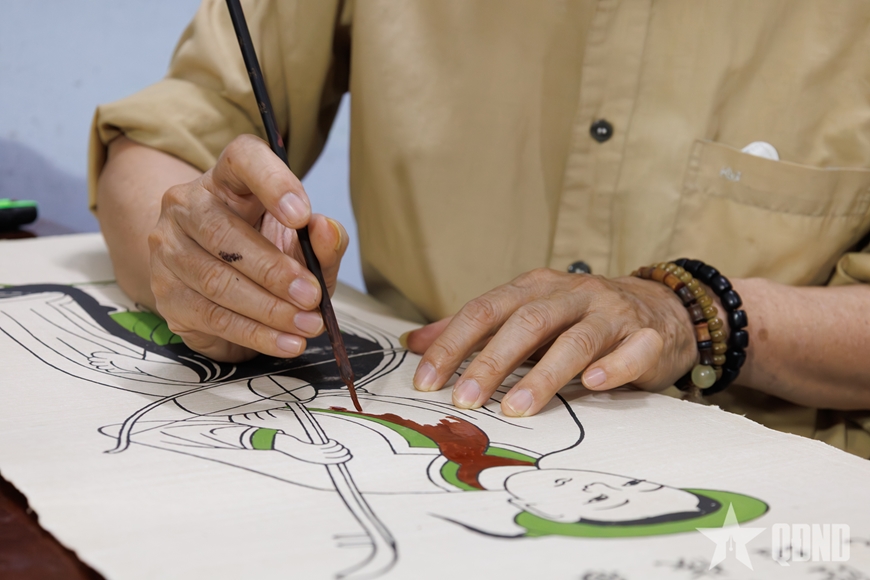 Mỗi bức tranh Đông Hồ ra đời là kết quả của nhiều công đoạn, từ sáng tác mẫu và khắc ván, chuẩn bị giấy dó, pha chế màu sắc, phết màu in tranh, phơi tranh...