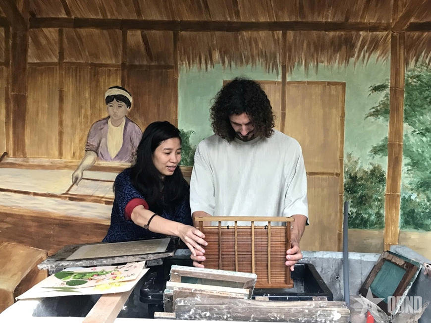 Hôm đến tham quan khu phục dựng của phường Tây Hồ, tôi (tác giả bài viết) gặp gỡ một du khách người Pháp. Anh kể, trong một lần lên mạng xã hội, vô tình thấy những tấm ảnh về giấy dó và bị cuốn hút bởi vẻ mộc mạc, trong trẻo của nó. Anh đã liên hệ với chị Nhung để được trực tiếp trải nghiệm các công đoạn làm giấy dó, được tự tay làm nên cuốn sách độc bản của riêng mình. Ở Zó Project hôm nay, có những người trẻ là học sinh phổ thông được chị Nhung truyền nghề. Có những người mới chập chững vào nghề được chị động viên, khuyến khích bằng nhiều cách để họ có thêm động lực ở lại với nghề.