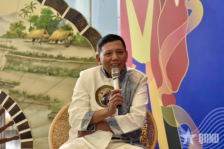 | Nghệ nhân Dương Văn Đoàn tham gia nhiều hoạt động giao lưu, lan tỏa tình yêu với nghề quạt truyền thống. |