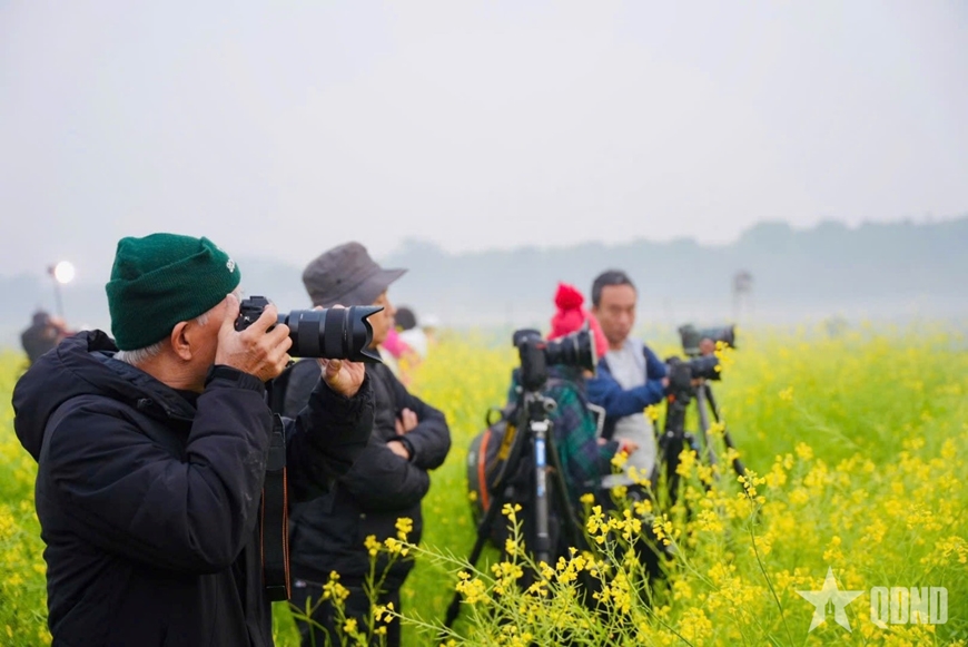 Những ngày này tại Hà Nội thời tiết luôn ở mức rét đậm nhưng không làm trở ngại những nhiếp ảnh gia. Những người yêu nghệ thuật và các bạn trẻ có mặt từ rất sớm để có thể bắt trọn từng khoảnh khắc của bình minh tại bến hoa Phúc Xá. Từ 5 giờ sáng, hàng chục nhiếp ảnh gia đã có mặt để chọn cho mình những góc đứng đẹp nhất, kiên nhẫn hướng ống kính của mình để không bỏ lỡ bất kỳ khoảnh khắc đáng giá nào.