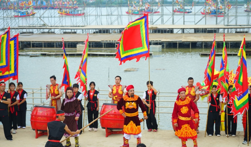 Người dân hai bên bờ đứng kín triền đê, số lượng người đổ về xem hội rất đông nhưng tuyệt nhiên không diễn ra tình trạng xô đẩy, chen lấn. Ban Quản lý di tích cho biết số lượng thuyền luôn duy trì ở mức khoảng 50 chiếc. Lực lượng trên bộ của đội võ Nhất Nam và các đội rồng lân được chuẩn hóa từ nghi thức để phối hợp hài hòa với các thuyền dưới sông, tạo nên hiệu quả thị giác đẹp mắt nhất. Các đội thuyền của ngư dân đến từ vùng sông nước Hải Phòng, Quảng Ninh cùng 400 võ sinh Nhất Nam và 100 tiêu binh phường Trần Hưng Đạo cùng hòa vào một khúc xướng hùng tráng.