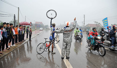 QĐND - “Đường vô xứ nghệ quanh quanh/ Non xanh nước biếc như tranh họa đồ”, câu ca ấy đã nói lên phần nào vẻ đẹp của xứ Nghệ, một vùng đất giàu truyền thống cách mạng với những địa danh và danh nhân nổi tiếng. Đường về xứ Nghệ hôm nay rộn ràng cờ hoa của đông đảo lực lượng dân quân tự vệ, sinh viên Đại học Vinh và nhân dân hân hoan chào đón đoàn đua. Cũng như hôm qua, chặng 8 của cuộc đua từ thành phố Hà Tĩnh về Nhà Bác Hồ (Kim Liên, Nghệ An) trong tiết trời mưa to, tầm nhìn hạn chế bởi mưa mù, đường trơn đã gây không ít khó khăn cho các vận động viên. Với quãng đường thi đấu ngắn, nên ngay sau khi xuất phát, các vận động viên đã không thể tách thành từng tốp như những chặng đường dài trước đó. Dọc đường đua, tuy mưa chỉ ngớt khi về gần đến địa phận Nam Đàn (Nghệ An) nhưng liên tục diễn ra những cú bứt phá ngoạn mục của các vận động viên...
