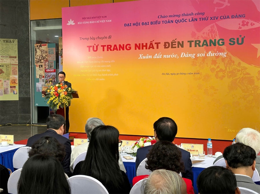 Phát biểu khai mạc trưng bày, đồng chí Nguyễn Đức Lợi, Phó chủ tịch Thường trực Hội Nhà báo Việt Nam nhấn mạnh: Trưng bày không chỉ tái hiện những dấu mốc lịch sử, những thành tựu nổi bật của đất nước qua các thời kỳ, mà còn cho thấy sinh động vai trò đặc biệt của công tác tư tưởng, tuyên truyền và báo chí cách mạng trong việc củng cố niềm tin của nhân dân đối với Đảng, khơi dậy tinh thần yêu nước, ý chí tự cường và sức mạnh đại đoàn kết toàn dân tộc.