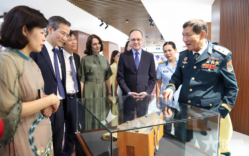 | Trung tướng, Anh hùng LLVT nhân dân Phạm Tuân chia sẻ câu chuyện phía sau những kỷ vật lịch sử. |