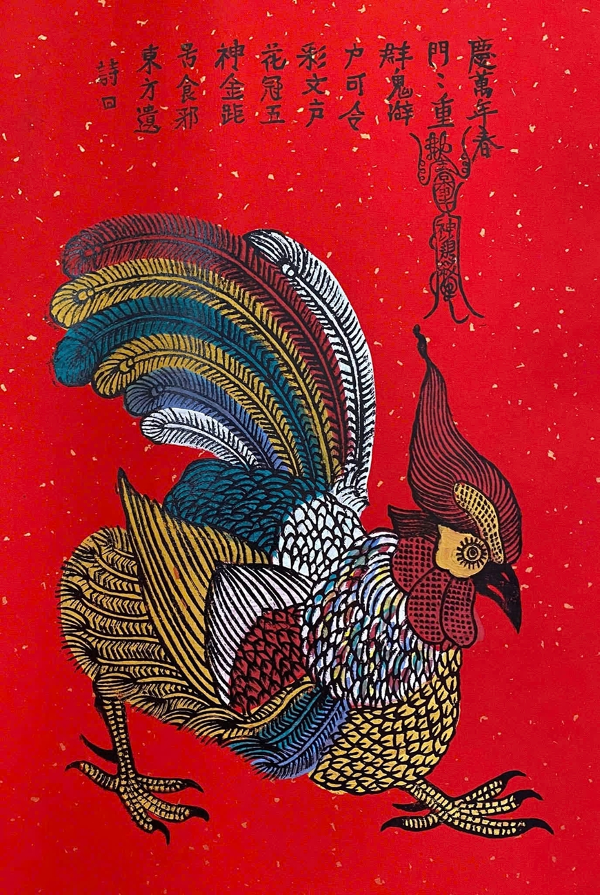 Khi đã có được nền giấy đỏ, ông Chung tiếp tục phục dựng các ván in dựa trên ảnh tư liệu cổ và các bản phác cũ. Mỗi đường khắc, mỗi lớp mực đều được tính toán kỹ lưỡng. Năm 2015, bức “Thần Kê” đầu tiên được hoàn thiện. Đây là dấu mốc quan trọng khẳng định rằng dòng tranh Kim Hoàng thực sự có thể hồi sinh.