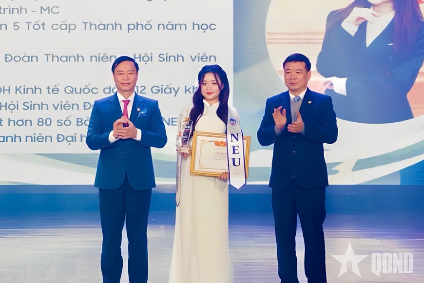 | Minh Anh nhận danh hiệu Sinh viên tiêu biểu năm 2025 của Đại học Kinh tế Quốc dân. Ảnh do nhân vật cung cấp |