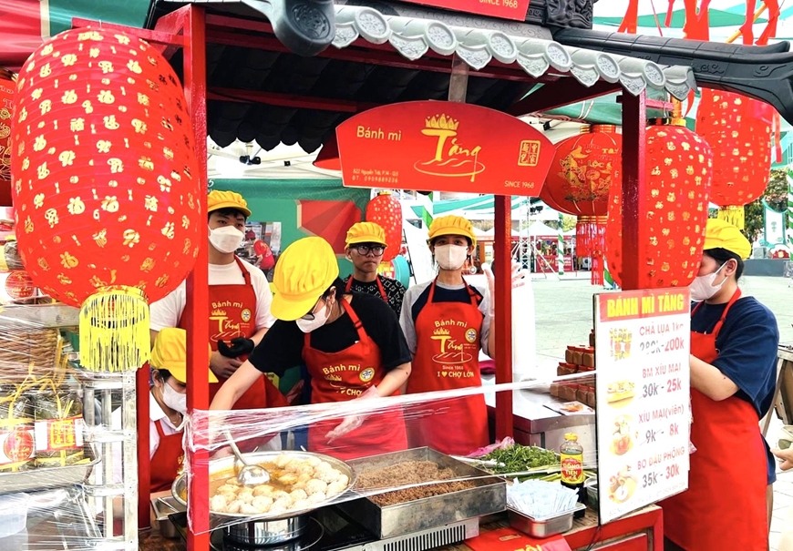 Tại gian hàng Bánh mì Tăng, thương hiệu bánh mì lâu đời tại TP Hồ Chí Minh, anh Tăng Chiêu Quân, chủ tiệm Bánh mì Tăng, vừa tất bật chuẩn bị món ăn cho khách vừa chia sẻ vui rằng lượng khách năm nay đông đến mức “không còn thời gian để đếm gian hàng đã bán bao nhiêu cái bánh mì”. “Tôi cảm thấy rất vui khi thấy mọi người thưởng thức ngon miệng. Gian hàng cũng có nhiều khuyến mãi để tăng sự tiếp cận của món ăn đến các thực khách", anh Tăng Chiêu Quân chia sẻ.