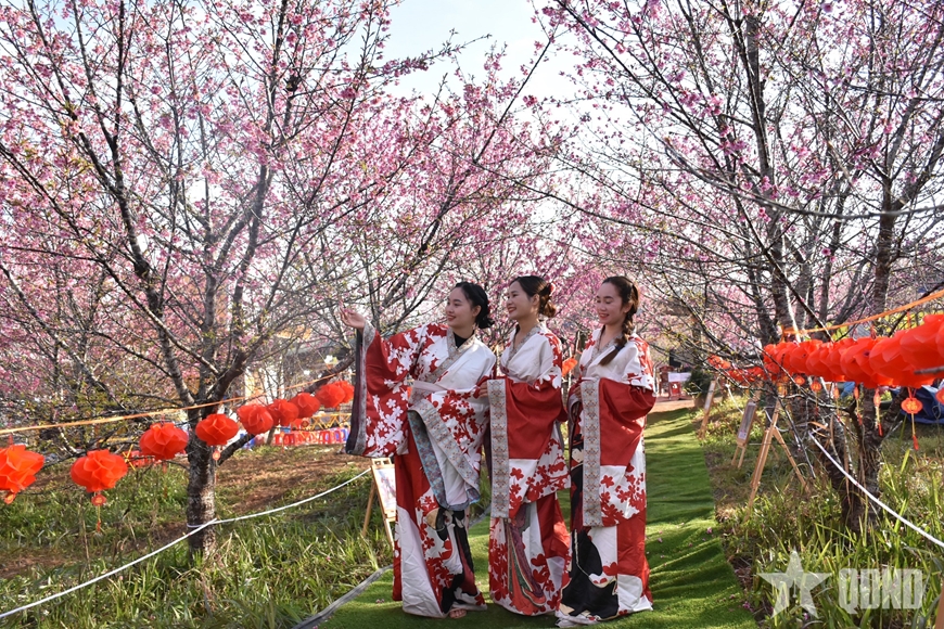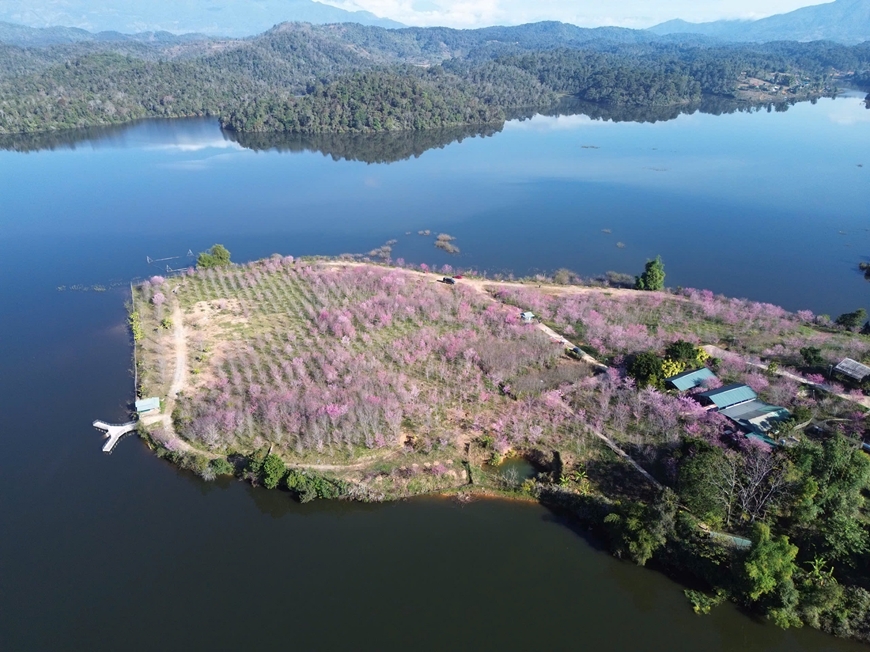 | Hoa anh đào khoe sắc trên mảnh đất lịch sử Mường Phăng. |