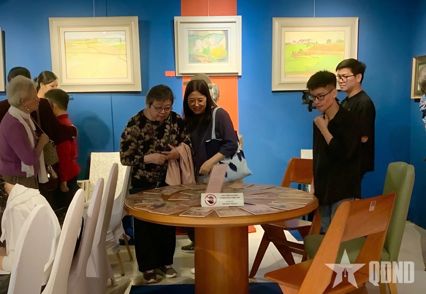 | Khách tham quan trưng bày tại tọa đàm. Ảnh: LÊ NA |