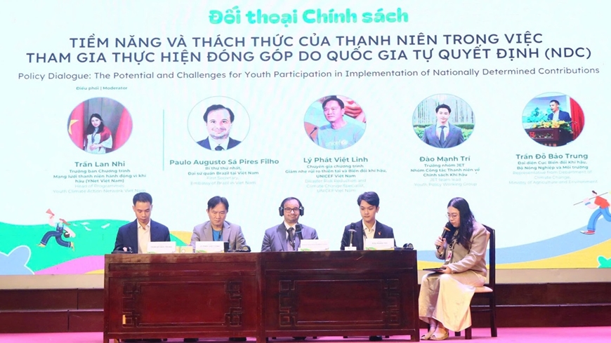 Tại phiên đối thoại chính sách “Tiềm năng và thách thức của thanh niên trong việc tham gia thực hiện đóng góp do quốc gia tự quyết định (NDC)”, các diễn giả và 400 đại biểu thanh niên đã cùng nhau thảo luận sôi nổi.