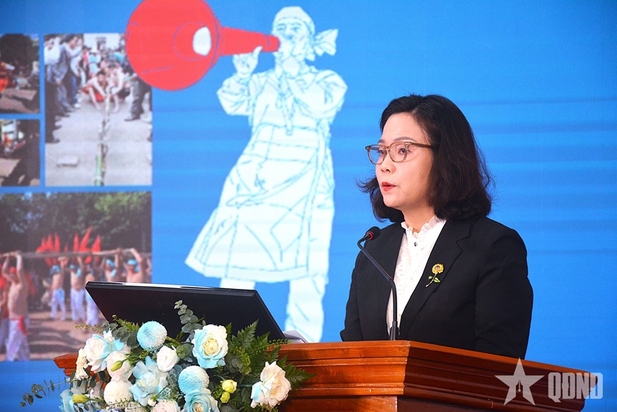 | Đồng chí Lê Thị Ánh Mai, Phó giám đốc Sở Văn hóa và Thể thao TP Hà Nội phát biểu. |