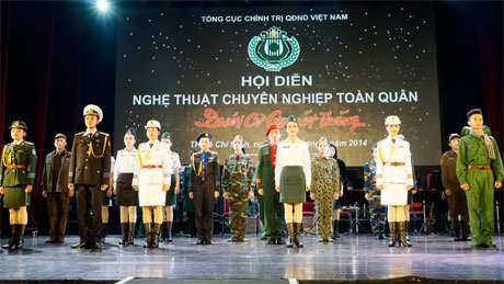 QĐND - Tối 8-8, tại Nhà hát Quân đội phía Nam (quận Tân Bình, TP Hồ Chí Minh), Tổng cục Chính trị (TCCT) đã khai mạc Hội diễn nghệ thuật chuyên nghiệp (NTCN) toàn quân năm 2014 với chủ đề "Dưới cờ Quyết thắng". Đêm khai mạc trở thành điểm nhấn khởi đầu cho hoạt động thi đua nghệ thuật sôi nổi giữa các đoàn NTCN trong toàn quân, tiếp tục diễn ra đến ngày 15-8 ở Thành phố mang tên Bác.