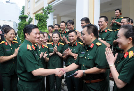 Thượng tướng Ngô Xuân Lịch thăm, khích lệ các cán bộ, diễn viên Nhà hát Chèo quân đội.