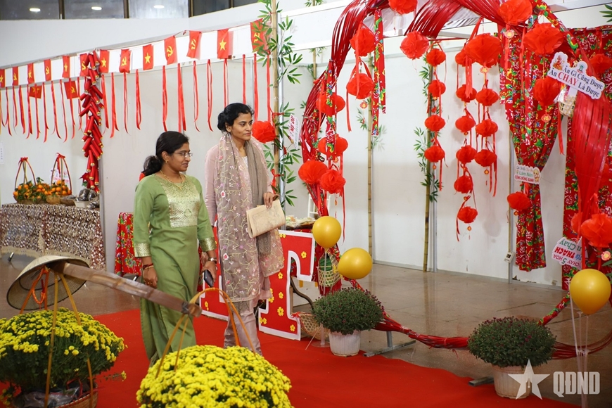 Đại diện Trung tâm Văn hoá Ấn Độ chiêm ngưỡng tiểu cảnh Tết tại Hội xuân Bính Ngọ 2026.