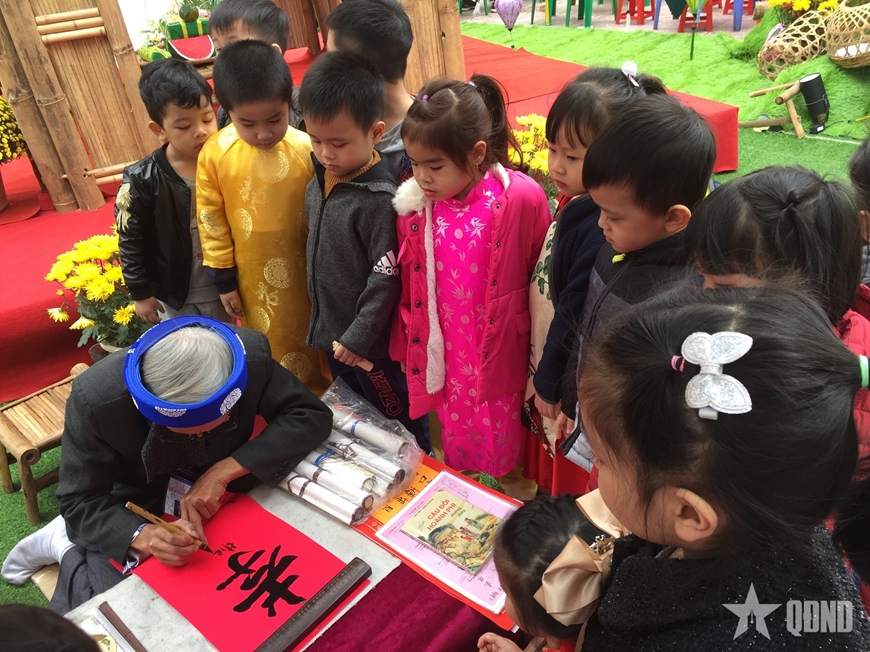 Ông đồ Nguyễn Trần Đệ (sinh năm 1945) chia sẻ: “Tôi không coi việc viết chữ ở đây là trình diễn. Mỗi nét chữ là một lời chúc, để nhắc con người ta nhớ đến nếp nhà, đến gốc rễ. Trẻ con đứng xem, hỏi han, tò mò về từng chữ, như vậy là văn hóa đã tự chạm vào các cháu rồi”.