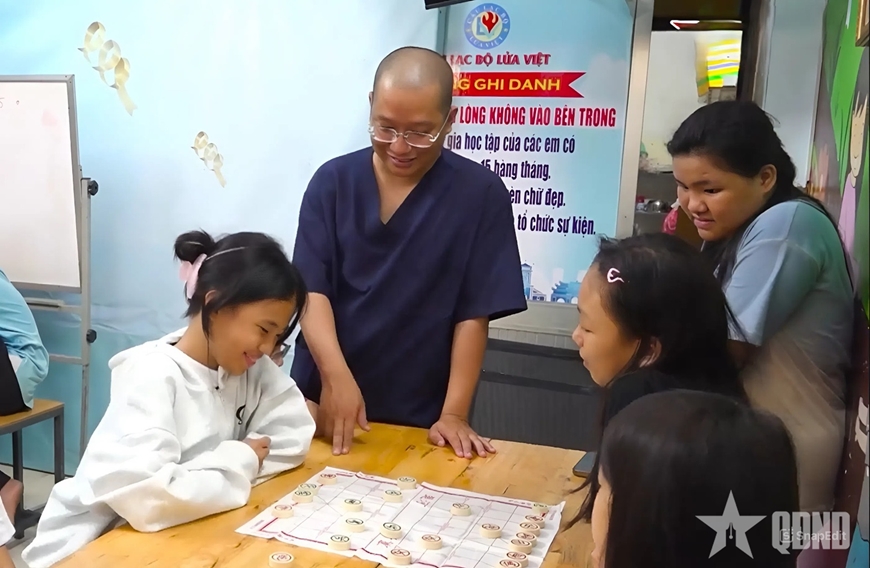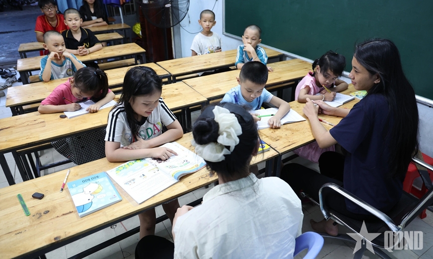 Đồng hành với anh Huỳnh Ngọc Định là gần 20 sinh viên và tình nguyện viên trẻ. Các sinh viên và tình nguyện viên cùng kiên trì kèm cặp, ôn luyện kiến thức cho các em, đồng thời giúp xóa mù chữ cho những đứa trẻ chưa từng một ngày đến trường. Điều đáng trân quý hơn cả là khi chính những học trò năm nào, sau khi trưởng thành, lại chọn quay về lớp học đầu đời của mình để tiếp tục gieo chữ. Như bạn Đặng Trúc Anh (sinh viên năm thứ tư ngành Luật, Trường Đại học Trưng Vương), từng ngồi học tại lớp học này, nay đã trở thành người chị, người cô dìu dắt đàn em. Trúc Anh xúc động chia sẻ: “Tám năm gắn bó nơi này, em rất vui khi thấy các bạn nhỏ ngày nào còn lúng túng với bảng chữ cái, giờ đã học THCS, THPT. Lớp học đã trao cho chúng em tri thức để bước vào tương lai, và cũng là ngôi nhà thứ hai để em trở về, tiếp tục giúp đỡ những em nhỏ có hoàn cảnh giống mình”.