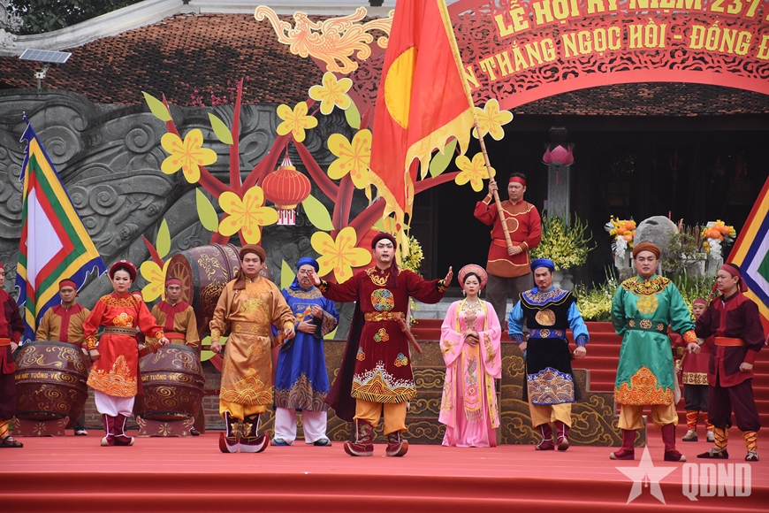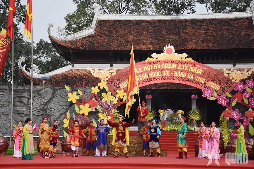 Mở màn lễ hội là lễ dâng hoa, tuyên Chúc văn và dâng hương, đặc biệt là chương trình nghệ thuật “Màn sử thi kỷ niệm 237 năm chiến thắng Ngọc Hồi-Đống Đa”. Chương trình đã tái hiện các hoạt cảnh Bắc Bình Vương xưng đế lấy niên hiệu là Quang Trung, lãnh đạo nghĩa quân Tây Sơn hành quân thần tốc quét sạch quân xâm lược Mãn Thanh, cùng nhân dân Thăng Long mừng chiến thắng và vui Tết Kỷ Dậu.