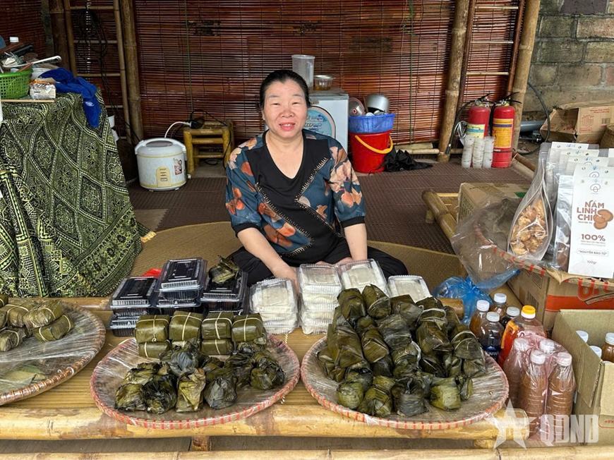 | Gian hàng trưng bày đa dạng các loại bánh truyền thống như bánh chưng, bánh giò,... thu hút du khách thưởng thức và khám phá tinh hoa ẩm thực Hà Thành. |