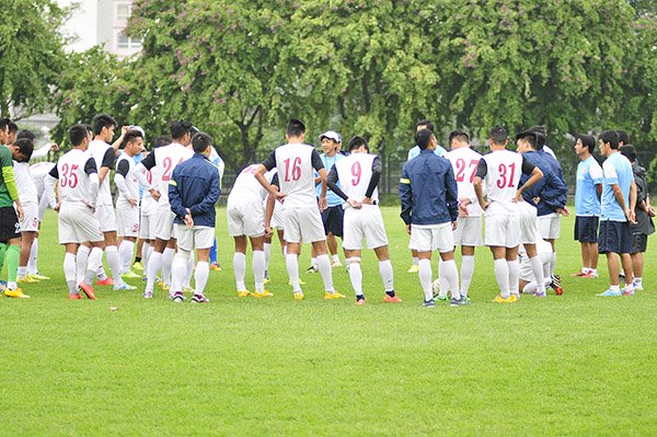 ĐT Việt Nam đóng cửa tập kín. Ảnh: VFF.