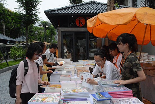 Phố sách Hà Nội đi vào hoạt động thu hút nhiều độc giả tham quan. |