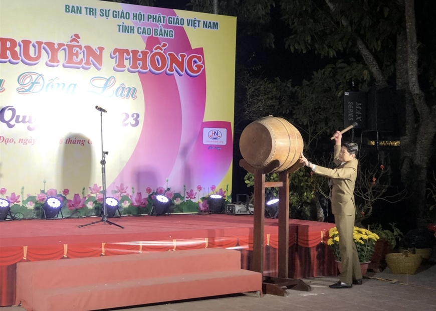 Lãnh đạo xã Hưng Đạo đánh trống khai mạc lễ hội.