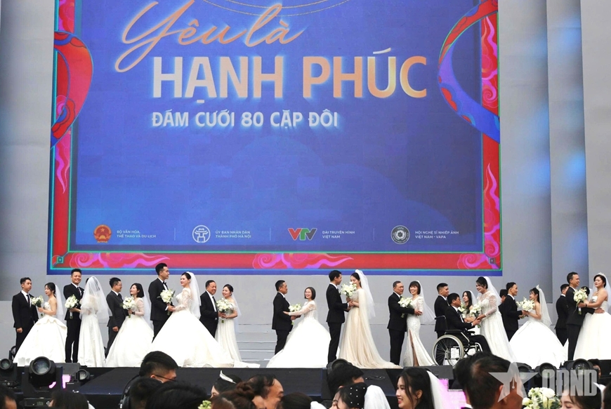 | Lễ cưới tập thể của 80 cặp đôi tại ngày hội. |