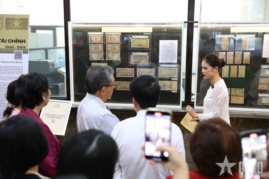 Khu trưng bày đồng tiền Việt Nam qua các thời kỳ tại Triển lãm thành tựu đất nước với chủ đề "80 năm hành trình Độc lập - Tự do - Hạnh phúc" thu hút sự chú ý của nhiều khách tham quan.