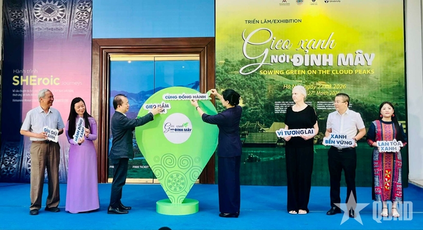 Triển lãm “Gieo xanh nơi đỉnh mây” là kết quả của đề tài nghiên cứu “Hành trình kể câu chuyện du lịch sinh thái của phụ nữ Việt Nam anh hùng thích ứng với biến đổi khí hậu” do Viện Tài nguyên và Môi trường, Đại học Quốc gia Hà Nội, Đại học Hull, Đại học Loughborough (Vương quốc Anh) và Bảo tàng Phụ nữ Việt Nam thực hiện từ tháng 7-2024 đến tháng 12-2025.
