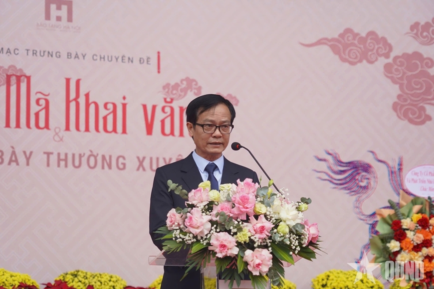 Phát biểu tại lễ khai mạc, Giám đốc Bảo tàng Hà Nội Nguyễn Tiến Đà chia sẻ, trưng bày chuyên đề “Long Mã khai văn” trong dịp đầu xuân mang tinh thần khai mở trí tuệ, gửi gắm ước vọng về sự hanh thông cho quốc gia, dân tộc. Đồng thời, mở ra không gian trưng bày các tác phẩm của các nghệ nhân, khuyến khích các làng nghề kế thừa giá trị văn hóa cốt lõi để sáng tạo ra những sản phẩm mới gắn với công nghiệp văn hóa.