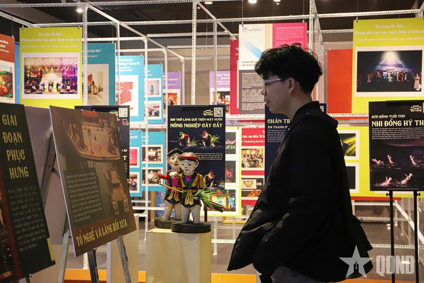 Bên cạnh không gian công nghệ, triển lãm còn trưng bày hệ thống tư liệu và hình ảnh giới thiệu tiến trình phát triển của nghệ thuật rối nước Việt Nam. Nhiều mô hình, quân rối đặc trưng do Nhà hát Múa rối Thăng Long cung cấp được giới thiệu, giúp người xem tiếp cận các loại quân rối truyền thống ngay trong không gian bảo tàng, mà không cần sự hỗ trợ của sân khấu nước.