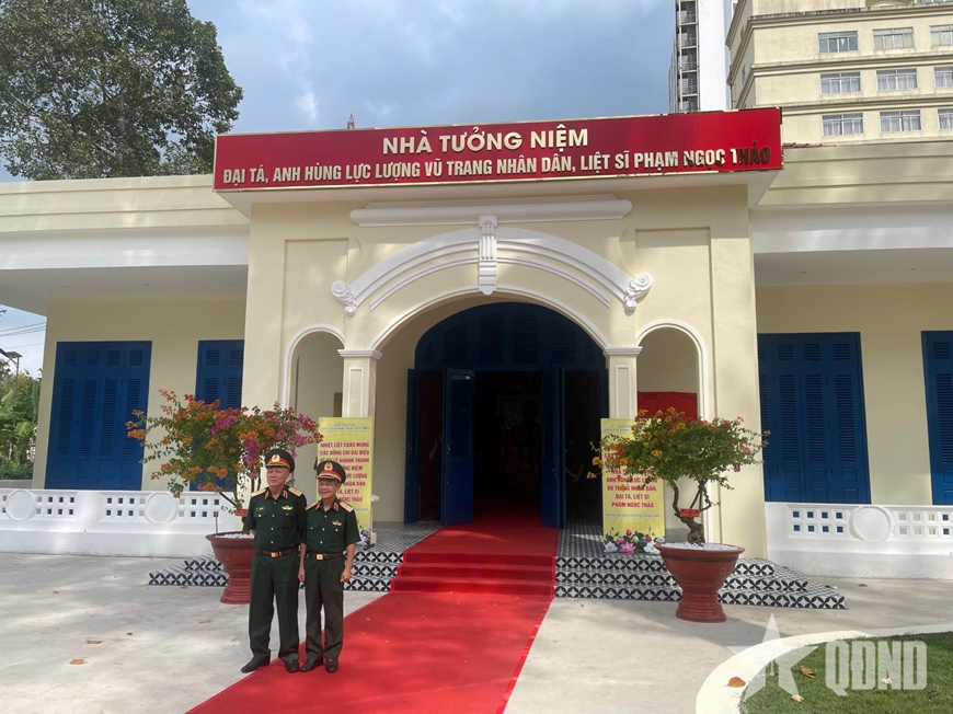 Các đại biểu đã tham quan Nhà tưởng niệm Đại tá, Anh hùng LLVT nhân dân, Liệt sĩ Phạm Ngọc Thảo. Công trình khởi công xây dựng vào tháng 9-2025 do Tổng cục II chỉ đạo Cục 12 làm chủ đầu tư, chịu trách nhiệm phối hợp với tỉnh Vĩnh Long, Ngân hàng TMCP Đầu tư và phát triển Việt Nam triển khai thi công. Đây là công trình có ý nghĩa chính trị sâu sắc, chào mừng kỷ niệm 80 năm Ngày truyền thống Tình báo quốc phòng Việt Nam (25-10-1945 / 25-10-2025). Nhà tưởng niệm có 1 tầng, diện tích xây dựng khoảng 312m², kết cấu bê-tông cốt thép, mái lợp ngói truyền thống; tổng kinh phí 10 tỷ đồng.