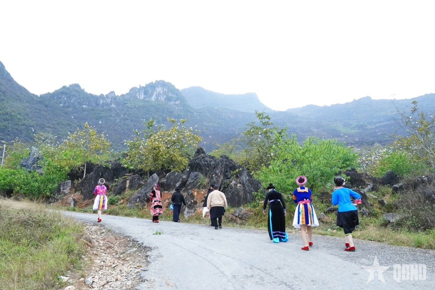 Hằng năm, từ chiều 26-3 âm lịch, khi hoàng hôn vừa buông xuống khỏi ngọn núi, từ những con đường mòn như sợi chỉ vắt từ đỉnh núi xuống lưng đồi, từng tốp người già trẻ, gái trai dập dìu xuống chợ. Bước chân thoăn thoắt bám vào những mỏm đá tai mèo sắc nhọn. Tiếng cười nói lanh lảnh vọng khắp thung sâu. Các cô gái Nùng, Giáy, Tày, Mông, Lô Lô,... trong những bộ trang phục đẹp nhất rộn ràng đi chơi chợ. Vẳng nghe trong gió tiếng khèn ai dìu dắt, da diết gọi bạn, hòa quyện với núi rừng như kéo bước chân người nhanh hơn… về Khâu Vai.