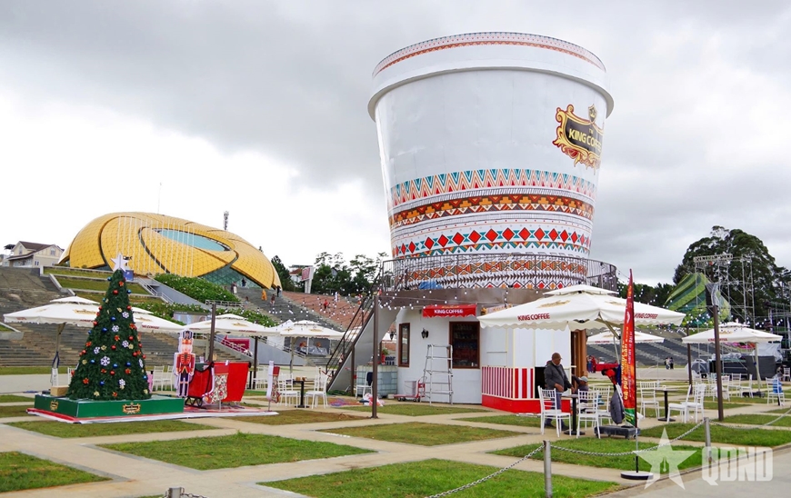 Điểm nhấn của lễ hội là không gian tổ chức trên Quảng trường Lâm Viên, nơi có mô hình ly cà phê khổng lồ - một biểu tượng cho khát vọng vươn tầm của ngành cà phê trong hành trình kết nối di sản cà phê toàn cầu. Rực rỡ dưới ánh đèn LED đa sắc, công trình không chỉ là một kỷ lục về kiến trúc mà còn là “ngọn hải đăng” khẳng định vị thế của Việt Nam trên bản đồ cà phê thế giới. Những bước chân viễn xứ dừng lại dưới bóng của biểu tượng này sẽ thấu cảm được tầm vóc của một ngành công nghiệp đang chuyển mình từ xuất khẩu thô sang kiến tạo thương hiệu văn hóa.