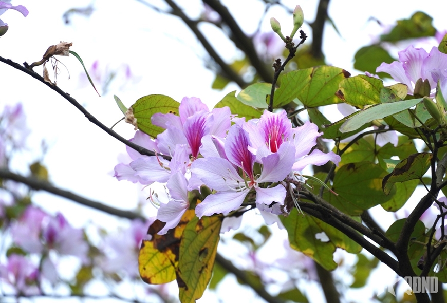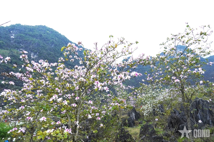 | Những tán hoa ban bung nở giữa đá tai mèo, làm mềm đi vẻ khô cứng của miền đá xám. |