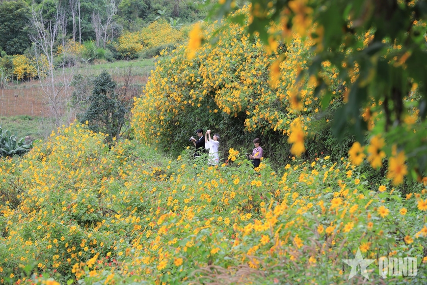 Khoảnh khắc ấy chính là mùa hoa dã quỳ bung nở. Loài hoa sống đời hoang dã, quanh năm làm bạn với nắng mưa, âm thầm kết nhựa, đợi nắng và gió về đồng loạt khoe sắc, dệt nên thảm vàng óng ả trên mặt đất. Mỗi bông hoa giống như một mặt trời, cả rừng hoa như có hàng triệu mặt trời lấp lánh. Sức sống và vẻ đẹp của dã quỳ trở thành biểu tượng, niềm cảm hứng lớn trên vùng đất cao nguyên.