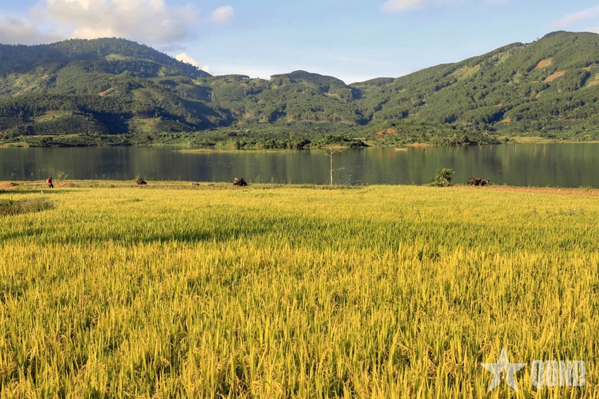 | Cánh đồng lúa bên hồ Kala, xã Bảo Thuận, tỉnh Lâm Đồng. |